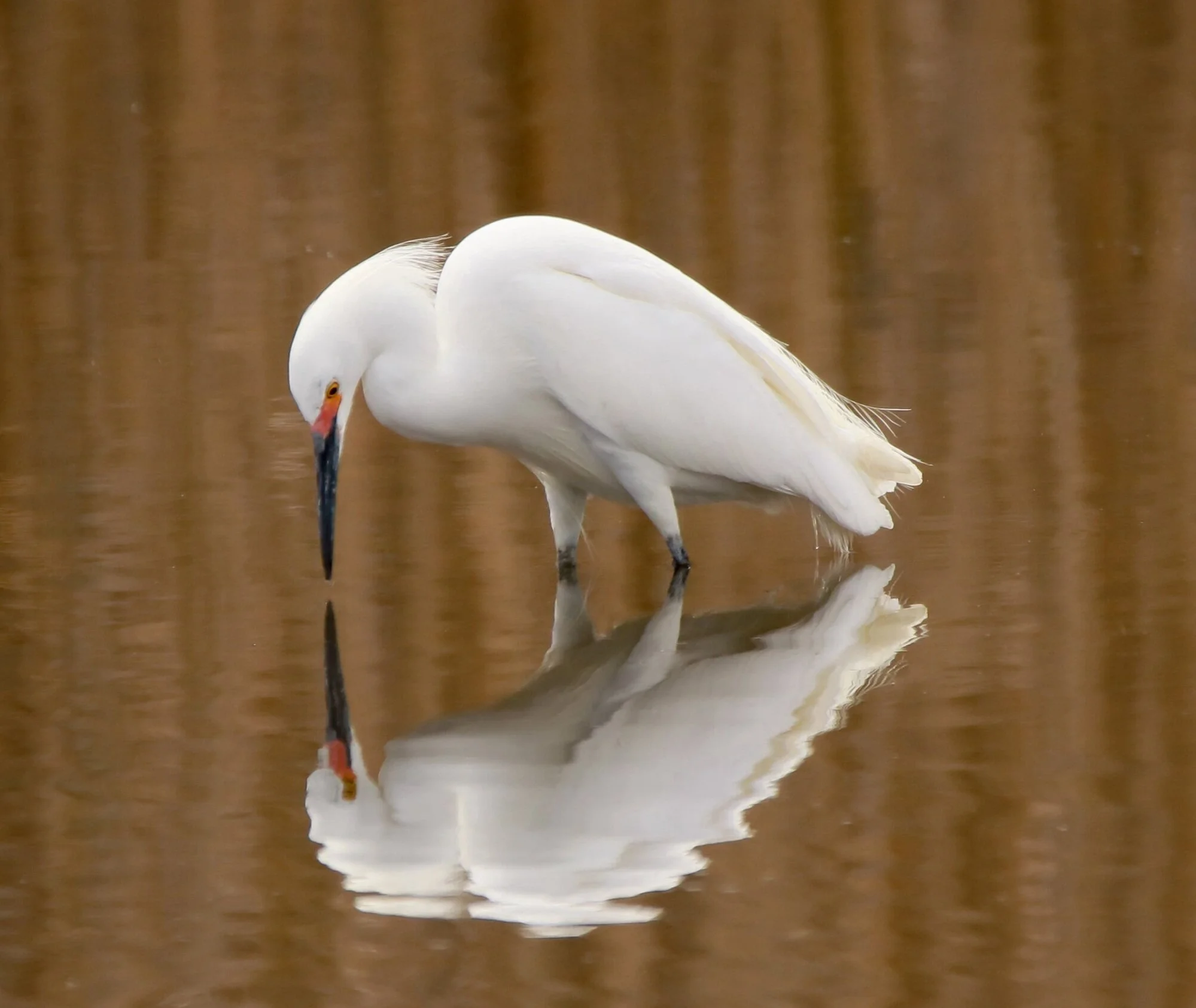 Snowy egret admiring her reflection.
